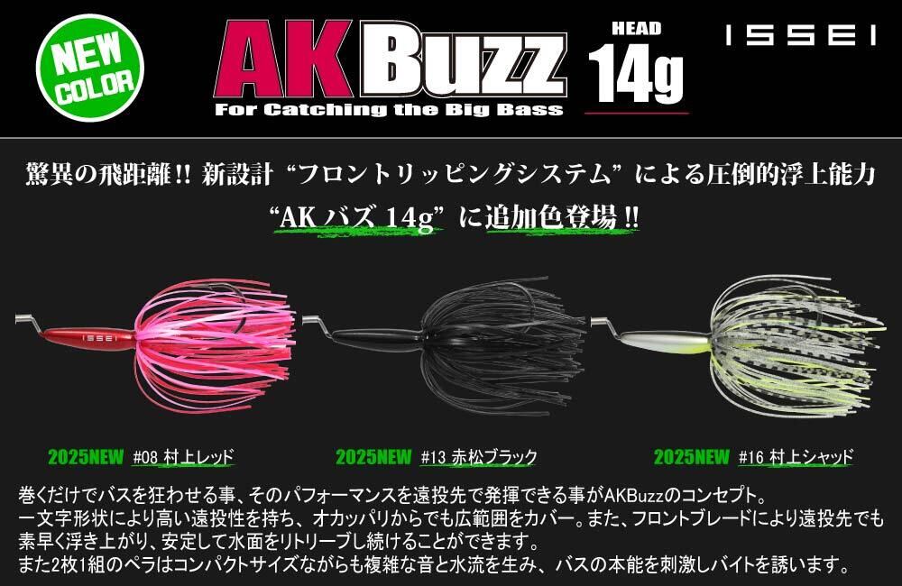 巻くだけでバスを狂わせる事、そのパフォーマンスを遠投先で発揮できる事がAK Buzzのコンセプト。一文字形状により高い遠投性を持ち、 オカッパリからでも広範囲をカバー。また、フロントブレードにより遠投先 でも素早く浮き上がり、安定して水面をリトリーブし続けることができます。 また2枚1組のペラはコンパクトサイズながらも複雑な音と水流を生み、 バスの本能を刺激しバイトを誘います。
