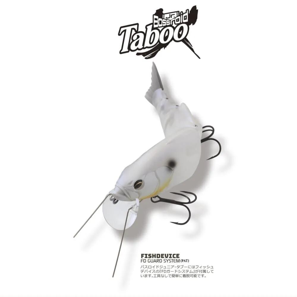 通常、首振りアクション用のルアーは1ジョイントが多いですが、タブーは贅沢にバスロイドJr.の3ジョイントを継承。2関節目と3関節目には『軟骨』をイメージさせるエラストマー製のダンパーを装備。これにより適度に動きを抑制しつつ、2つのプラスチックがカクカクと動くだけのアクションでは出せない、よりナチュラルで違和感のない柔らかい首振りアクションで通常の首振りアクションを見飽きたバスに口を使わせます。もちろんダンパーを外せば3関節リアルアクションビッグベイトとして使用できます。