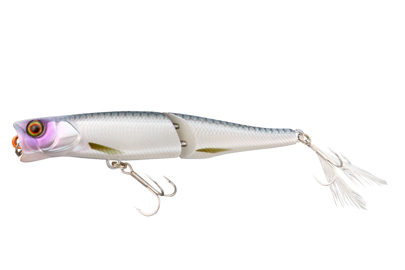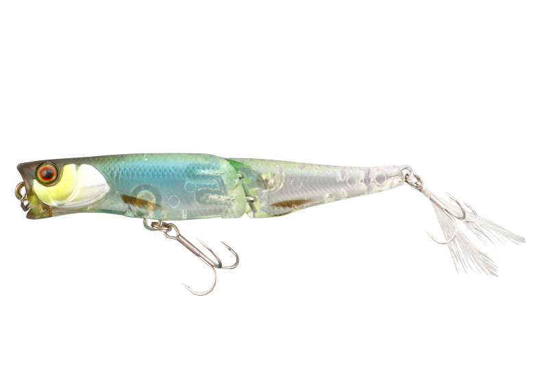 ”Boil Trigger/ボイルトリガー”は、弱ったベイトをイメージした食わせ能力に優れたスリムシルエットのジョイントタイプポッパー。水面付近を漂う小魚や岸沿いを逃げ惑うエビなどのボイルを小さなスプラッシュ(水しぶき)と小刻みなドッグウォークで再現します。