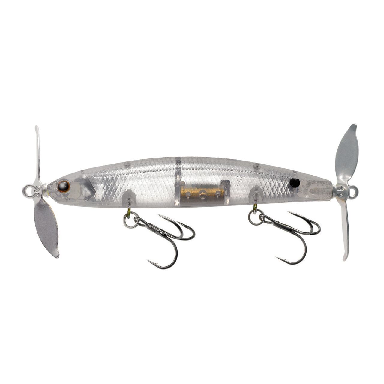 トップウォーターメーカー『ヒヨコブランド』のプロップテクノロジーPAT.を採用して開発された0.8mm厚のステンレス製プロップは、その重量によって回転始動時に抵抗を持たせてあります。回転に抵抗があることでランダムな水流と波動を生み出し、バスに記憶されにくく、スレにくいルアーに仕上がっています。プロップの穴をスクエアにすることで、回転時にカップワッシャーとヒートンに接触し、独自のクリック音と波動を発生させます。リアプロップの回転を妨げないよう、テールフックは排除しプロップの回転が命のスイッシャーとしての基本性能を高めています。