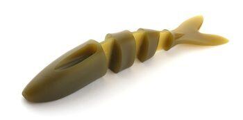 このプレーにもっともフィットしている素材のひとつがジャバロン素材。つまり、泳ぎのアクションと波動に反応させるスイムベイト的使い方もできながら、ズル引きでも放置でも拾い食いさせる力を持つワーム的使い方も両方できてしまうのがジャバロンのすごさ(3)なのです。