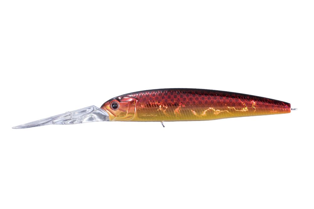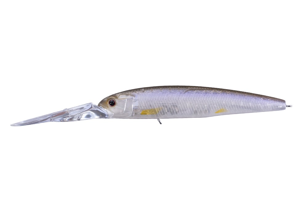ショートビルミノーは本物のベイトフィッシュに近いシルエットでシーズンを問わず水深1~2mで多用させる世界定番のルアー。一方で水深2.5m以深を攻めるミノーは、多用されているようには見えない。クランクベイトはオールレンジで活躍しているのにミノーがそうなっていない理由は如何に。そんな状況に一石を投じるべく、ベイトタックルで水深約3.5~4mを攻められるミノーを目指した。一般的なミノーのサイズはおおよそ7~13cmがある中で4m潜らせるために必要な飛距離が出せる重量があり、かつそのレンジのベイトフィッシュに近いサイズ感を両立できる9cmクラスを選択。またクランクとの差別化のためにミノーの良さである細身であることも重視した。そもそもロングビルミノーの難点の一つとして飛距離を出しにくいジャンルであること。特にレンジの違いを出すためにリップサイズが大きくなるほどその傾向は顕著。アシュラ89EX-DRはWタングステン重心移動と空気抵抗を研鑽しつくしたボディ形状により、大型リップでもロングキャストが可能。アクションはボディの軽量化と強度を維持するハニカムボディと低重心ウエイトにより、泳ぎ出しが良くハイピッチなタイトアクションを実現。ロングリップにより回避能力が高く、急角度で潜り水面から最大4.2mまで到達する。潜らせてからのトゥイッチでもレンジをキープしつづけ鋭くスライド。こうしてジャンル的課題を克服し水深4mオーバーを細身の9cmボディいで実現したことでこれまでに無い存在価値を目指す。