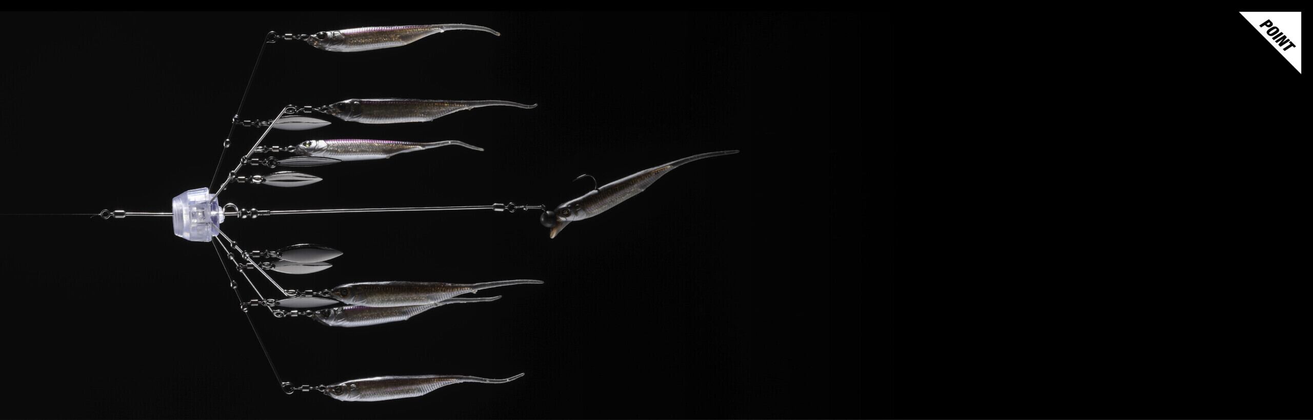 LUSTER BLADEとの組み合わせは相性抜群。浮力があるので、リグ全体を水平に保つ役割や中層でリグを粘らせて魚を呼ぶパワーをアップさせます。