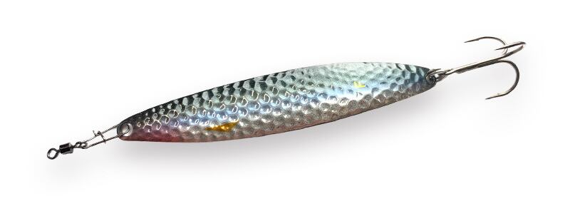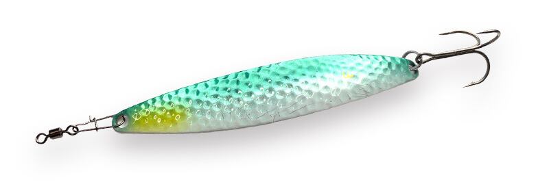 ワカサギ“マジック”スプーンは、メタルジグのスピーディーで明確なボトム操作性と、ビッグスプーンのトリッキーでアピール力のあるフラッタリングアクションを兼ね備えたハイブリッドジグスプーンです。細身でエッジの効いたボディーは、ラインテンションを張ると高速スライドフォールし、速やかにボトムに到達。明確な底取り感を発揮します。そして独特のRを持つボディーはハイリフトすると高く浮上し、そこからテンションを抜いてフリーフォールさせるとハイピッチロールしながらジグザグにスライドし、中層のパニックベイトを演出します。中層では独自の逃げ惑うパニックアクションでビッグバスの狩猟本能を刺激、ボトムではショートリフト&スライドフォールでリアクションバイトを誘発。ビッグスプーンの中層トリッキーアクションとメタルジグのボトムリアクションのアワセ技で、魔法のようにバイトを誘発する新感覚ジグスプーン。それがワカサギ“マジック”スプーンコンセプトです。