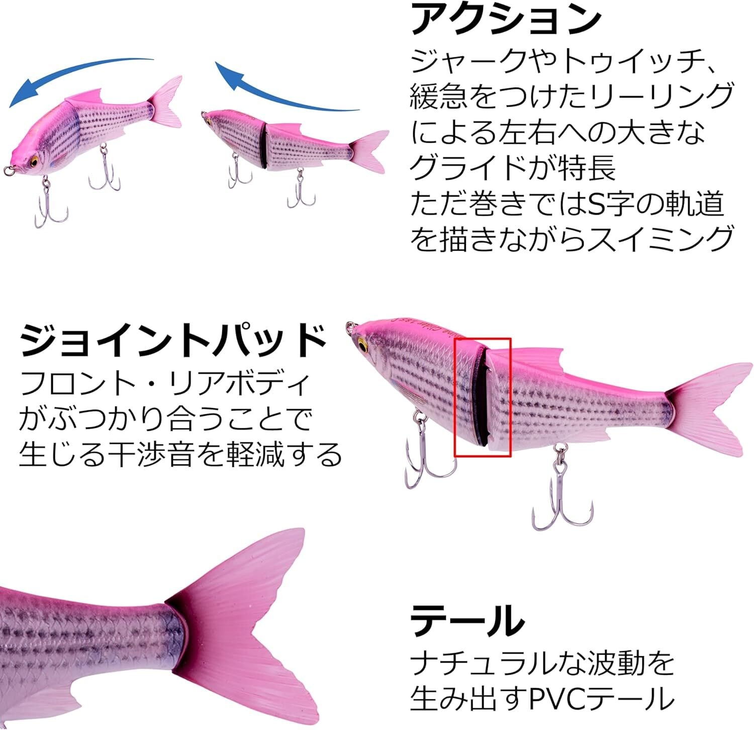 ジャークやトゥイッチ、緩急をつけたリーリングによる左右への大きなグライドアクションが特長。